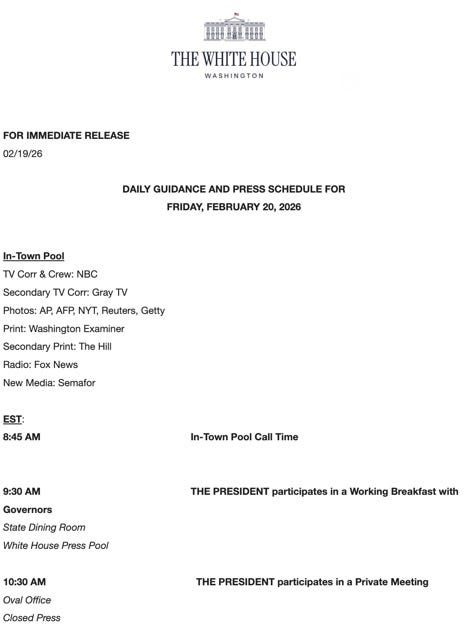 1:45 pm: Governors attend the opening session of the National Governors Association Winter Meeting in Washington, DC, featuring NGA Chair Kevin Stitt and Vice Chair Wes Moore.