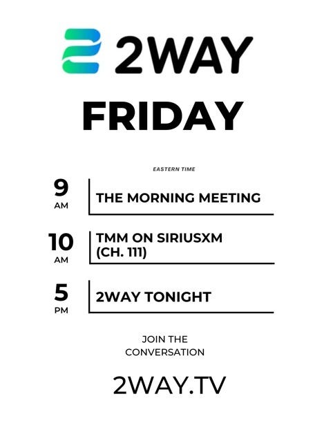 “The Morning Meeting” and “2WAY Tonight” are now available as audio podcasts on Apple, Spotify, and all major platforms.