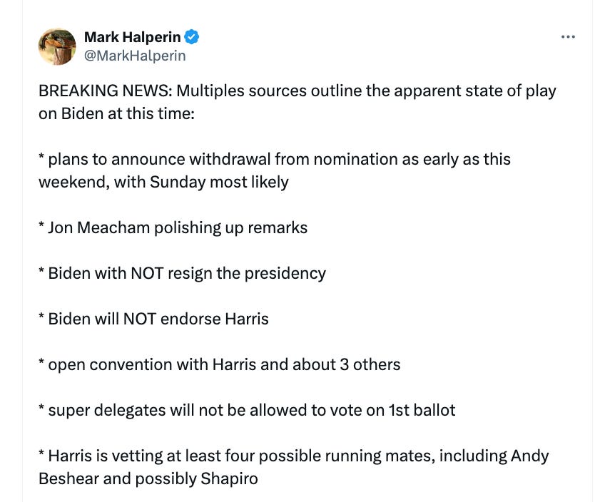 Here is the video of tonight’s episode discussing the breaking news about Joe Biden yielding to the reality of his situation.