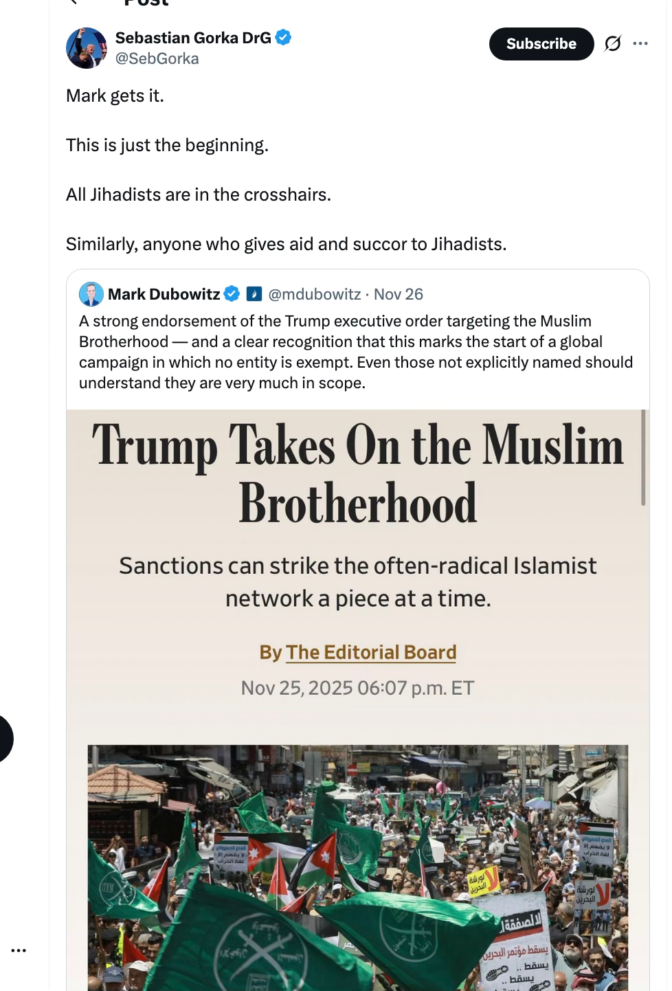 A not insignificant part of MAGA believes that the presence of pretty much all Muslims in America -- not just the ones who emigrated here -- is now properly seen as a failed experiment, and they should all leave (or, at least, not be permitted to be a part of public life, including elective office).