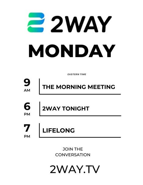 “The Morning Meeting” and “2WAY Tonight” are now available as audio podcasts on Apple, Spotify, and all major platforms.
