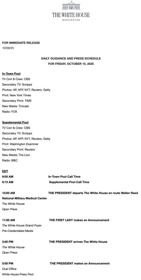 11:00am: The First Lady Melania Trump makes an announcement from The White House Grand Foyer.